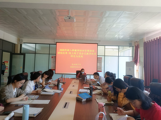 为更好地让基础部新入职教师深入了解线上线下授课的教学模式,加强教师岗位意识,培育爱岗情怀,9月11日和9月14日,我部英语教研室主任、副教授刘伟伟和数学教研室教授张志海分别为新教师开展了题为《智慧教学背景下大学英语混合式教学探索与实践》、《爱岗敬业,教书育人——对新教师的建议》的专题讲座。